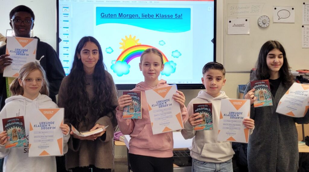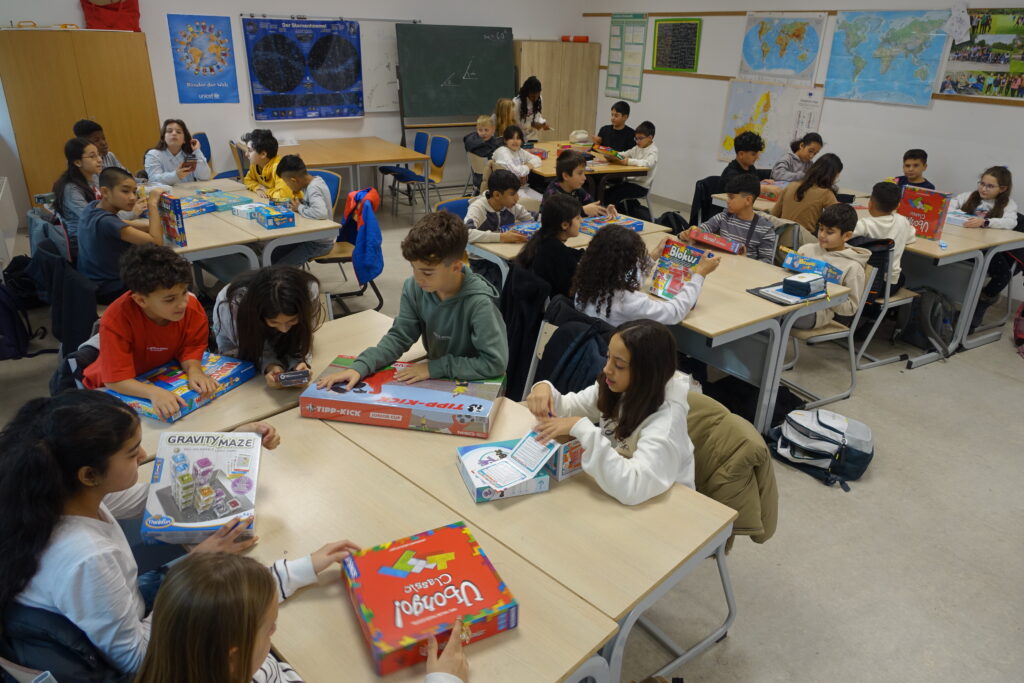 Die Klasse 5a freut sich gemeinsam mit Herrn Ziegler, viele neue Spiele im Mathematikunterricht oder in Vertretungsstunden auszuprobieren. Zur Verfügung gestellt werden die Spiele von der bundesweiten Initiative „Spielen macht Schule“, die jedes Jahr 200 Schulen ausstattet.